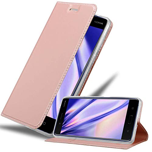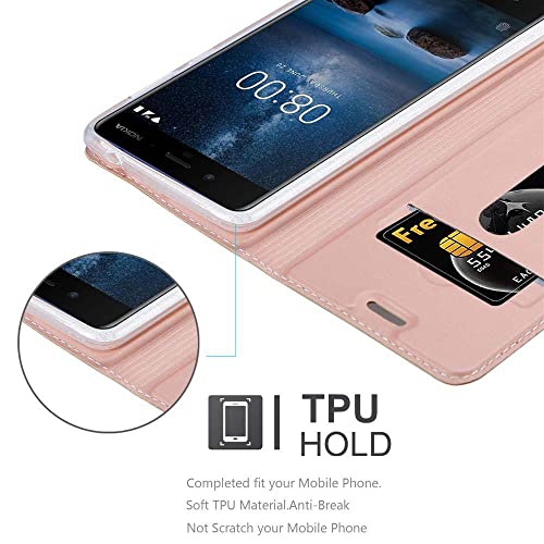 Cadorabo Custodia compatibile con Nokia 8 2017 in Classy Rosé Gold - Custodia protettiva con chiusura magnetica, funzione leggio e scomparto per carte di credito