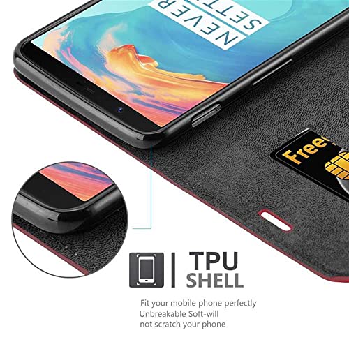 Cadorabo Custodia compatibile con OnePlus 5T in mela rossa - Custodia protettiva con chiusura magnetica, funzione leggio e scomparto per carte di credito