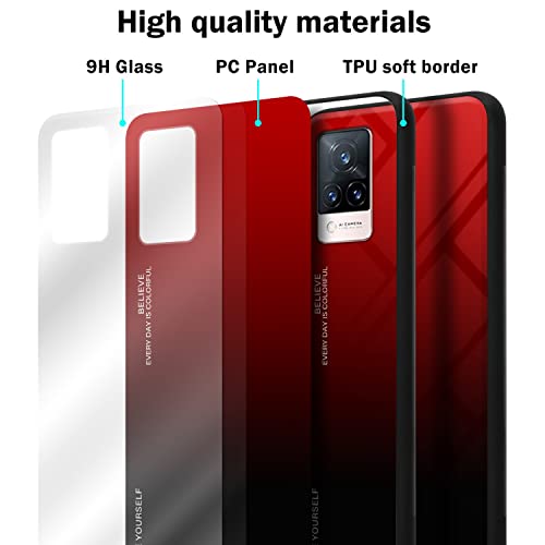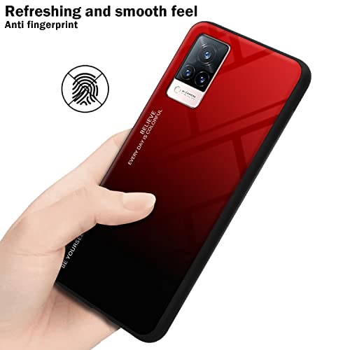 Cadorabo Custodia Compatibile con Vivo V21 4G / 5G in Rosso - Nero - Coperchio Protettivo Bicolore in Silicone TPU e Retro in Vetro temperato