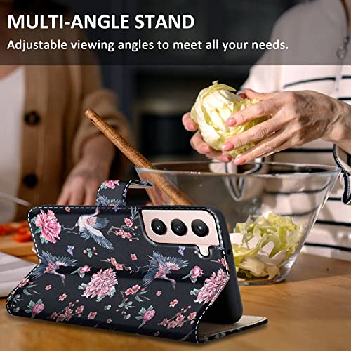 Cadorabo Custodia compatibile con Samsung Galaxy S21 5G - Design Gru & Fiori No. 9 - Coperchio protettiva con chiusura magnetica, funzione stand e tasca per le carte