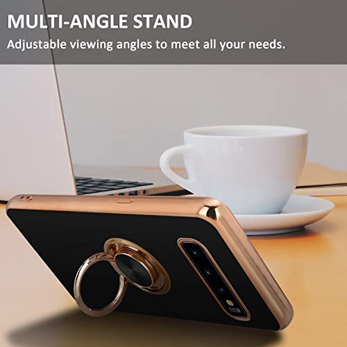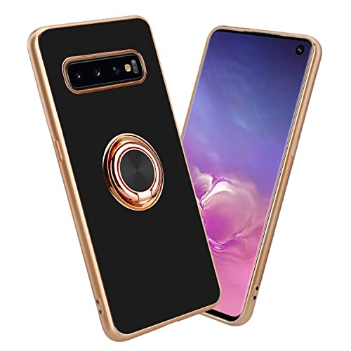 Cadorabo Custodia compatibile con Samsung Galaxy S10 PLUS in Glossy Nero - Oro con anello - Coperchio in silicone TPU flessibile, protezione per la fotocamera e supporto magnetico per l'auto