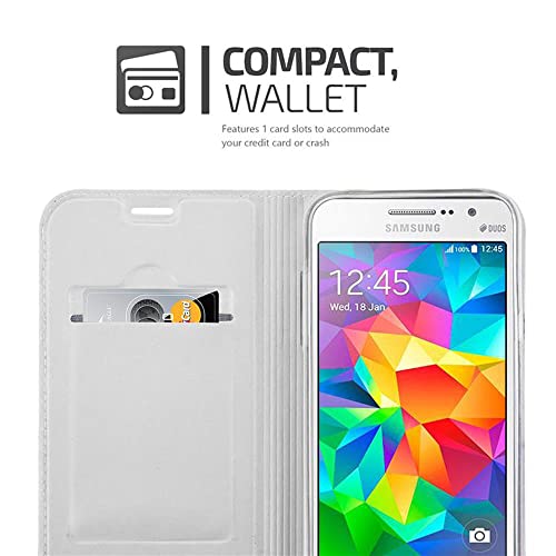 Cadorabo Custodia compatibile con Samsung Galaxy Grand Prime in Classy Argento - Custodia con chiusura magnetica, funzione leggio e scomparto per carte di credito
