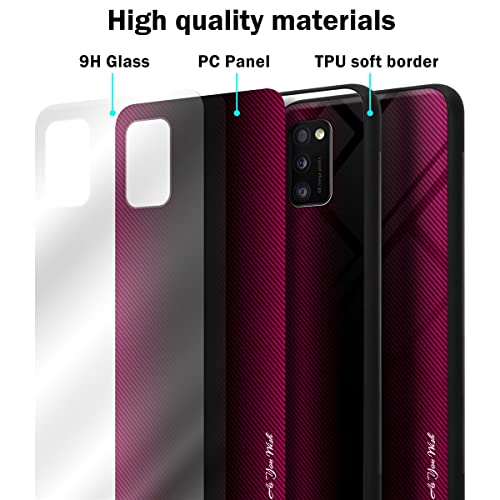 Cadorabo Custodia compatibile con Samsung Galaxy A41 - Ottica a strisce in CREMISI ROSA - Coperchio protettivo in silicone TPU e retro in vetro temperato