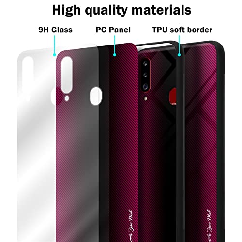 Cadorabo Custodia compatibile con Samsung Galaxy A20s - Ottica a strisce in CREMISI ROSA - Coperchio protettivo in silicone TPU e retro in vetro temperato