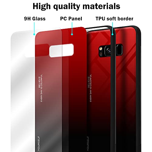 Cadorabo Custodia compatibile con Samsung Galaxy S8 in ROSSO - NERO - Coperchio protettivo bicolore in silicone TPU e retro in vetro temperato