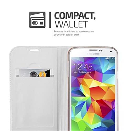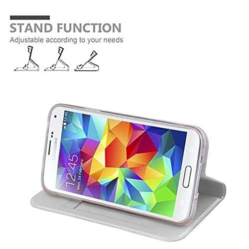 Cadorabo Custodia compatibile con Samsung Galaxy S5/S5 NEO in argento Classy, custodia protettiva con chiusura magnetica, funzione leggio e scomparto per carte di credito