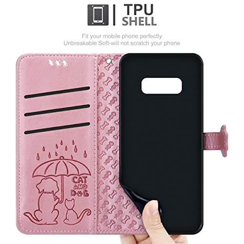 Cadorabo Custodia compatibile con Samsung Galaxy S10e in SHINY OR ROSA - Simpatici Cani e Gatti - Custodia Ultra Sottile Protettiva con Funzione di Supporto Stile Pieghevole
