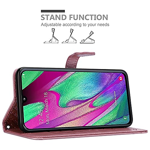 Cadorabo Custodia Compatibile con Samsung Galaxy A40 in Shiny OR Rosa - Simpatici Cani e Gatti - Custodia Ultra Sottile Protettiva con Funzione di Supporto Stile Pieghevole
