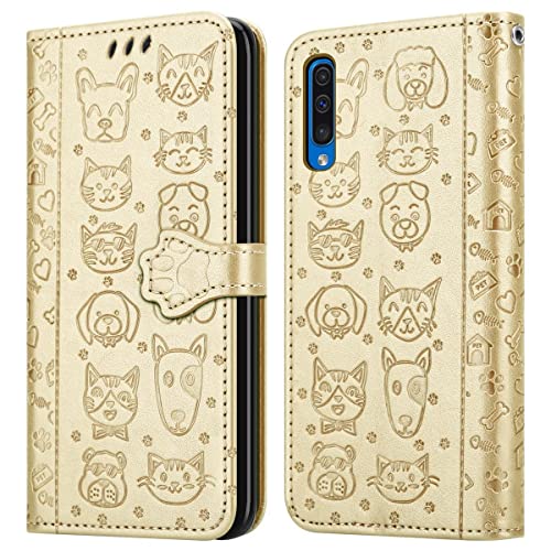 Cadorabo Custodia compatibile con Samsung Galaxy A50 / A50s / A30s in SHINY OR - Simpatici Cani e Gatti - Custodia Ultra Sottile Protettiva con Funzione di Supporto Stile Pieghevole