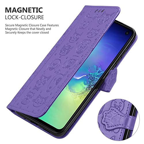 Cadorabo Custodia compatibile con Samsung Galaxy S10e in SHINY VIOLETT - Cani e gatti carini - Custodia protettiva con funzione di supporto e slot per carte di credito