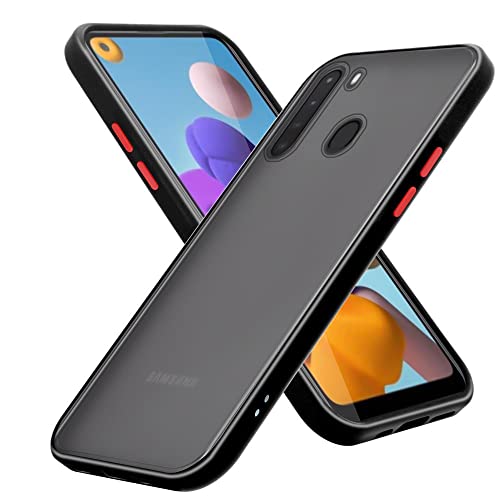 Cadorabo Custodia compatibile con Samsung Galaxy A21 EU Version in Nero Opaco - Bottoni rossi - custodia per cellulare con interno in silicone TPU e retro in plastica opaca - cover protettiva