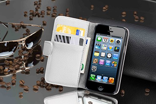 Cadorabo Custodia Libro per Apple iPhone 5 / iPhone 5S / iPhone SE in BIANCO FLOREALE - con Vani di Carte e Funzione Stand di Similpelle Strutturata - Portafoglio Cover Case Wallet Book Etui