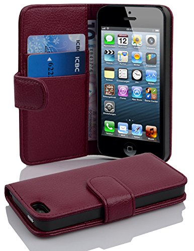 Cadorabo Custodia Libro per Apple iPhone 5 / iPhone 5S / iPhone SE in LILA BORDEAUX - con Vani di Carte e Funzione Stand di Similpelle Strutturata - Portafoglio Cover Case Wallet Book Etui Protezione