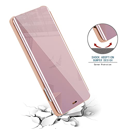 Cadorabo Custodia Libro compatibile con Apple iPhone XR in KUNZIT ROSA - Clear View Mirror - Ultra Sottile Custodia con Funzione di Supporto Protezione a 360 Gradi Stile Pieghevole