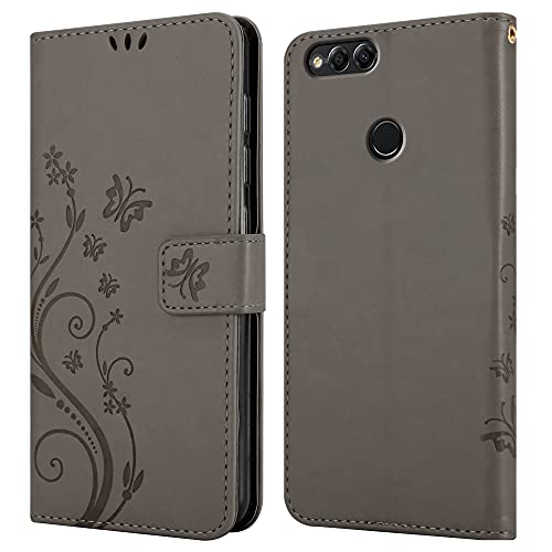 Cadorabo Custodia Libro compatibile con Honor 7X in GRIGIO FIORE - in Design di Fiore con Chiusura Magnetica, Funzione Stand e 3 Vani di Carte - Portafoglio Cover Case Wallet Book Etui Protezione