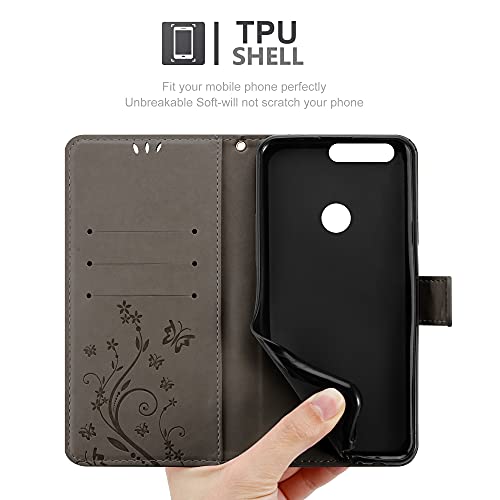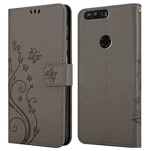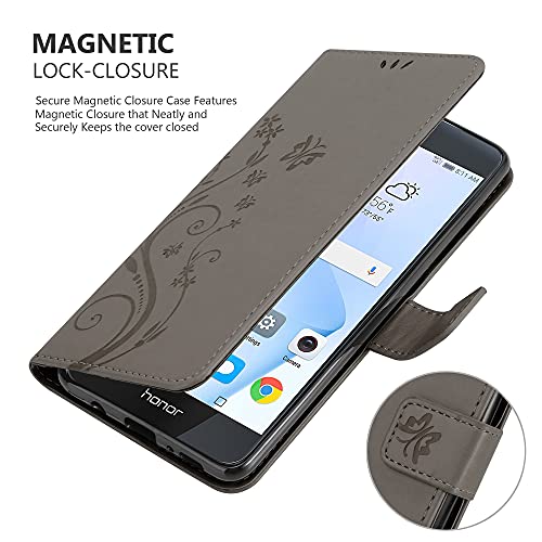 Cadorabo Custodia Libro compatibile con Honor 8/8 PREMIUM in GRIGIO FIORE - in Design di Fiore con Chiusura Magnetica, Funzione Stand e 3 Vani di Carte - Cover Case Wallet Book Etui Protezione