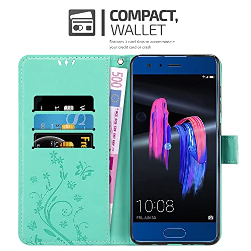Cadorabo Custodia Libro Compatibile con Honor 9 in Turchese Fiore - in Design di Fiore con Chiusura Magnetica, Funzione Stand e 3 Vani di Carte - Portafoglio Cover Case Wallet Book Etui Protezione