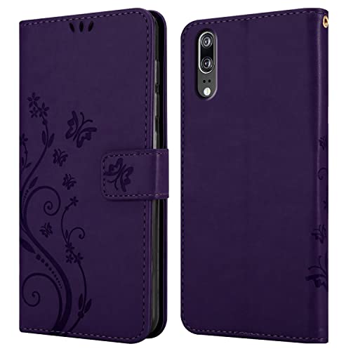 Cadorabo Custodia Libro Compatibile con Huawei P20 in Lilla Scuro Fiore - in Design di Fiore con Chiusura Magnetica, Funzione Stand e 3 Vani di Carte - Cover Case Wallet Book Etui Protezione