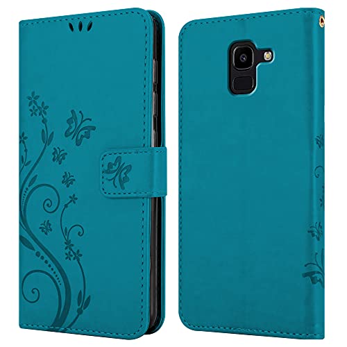 Cadorabo Custodia Libro compatibile con Samsung Galaxy J6 2018 in BLU FIORE - in Design di Fiore con Chiusura Magnetica, Funzione Stand e 3 Vani di Carte - Cover Case Wallet Book Etui Protezione