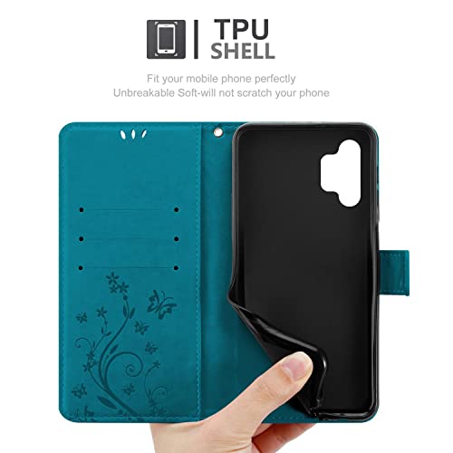 Cadorabo Custodia Libro compatibile con Samsung Galaxy A32 5G in BLU FIORE - in Design di Fiore con Chiusura Magnetica, Funzione Stand e 3 Vani di Carte - Portafoglio Cover Case Wallet Book Etui