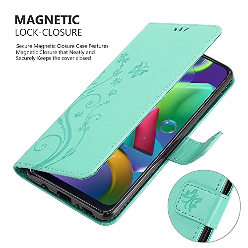 Cadorabo Custodia Libro compatibile con Samsung Galaxy M31 in TURCHESE FIORE - in Design di Fiore con Chiusura Magnetica, Funzione Stand e 3 Vani di Carte - Cover Case Wallet Book Etui Protezione
