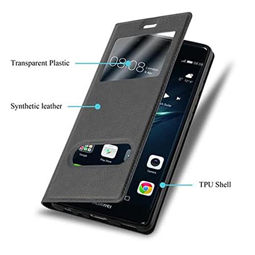 Cadorabo Custodia Libro per Huawei P9 in NERO COMETA - con Funzione Stand e Chiusura Magnetica - Portafoglio Cover Case Wallet Book Etui Protezione
