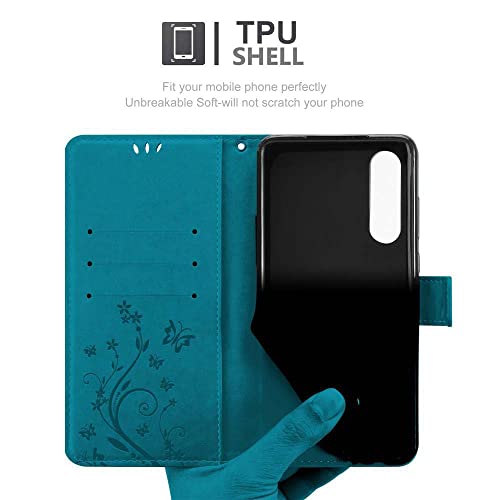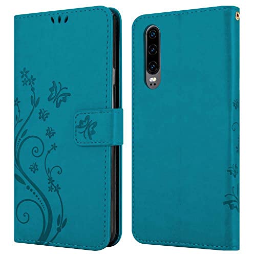 Cadorabo Custodia Libro per Huawei P30 in BLU FIORE - in Design di Fiore con Chiusura Magnetica, Funzione Stand e 3 Vani di Carte - Portafoglio Cover Case Wallet Book Etui Protezione
