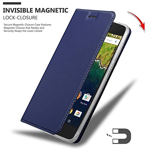 Cadorabo Custodia Libro per Huawei NEXUS 6P in CLASSY BLU SCURO - con Vani di Carte, Funzione Stand e Chiusura Magnetica - Portafoglio Cover Case Wallet Book Etui Protezione