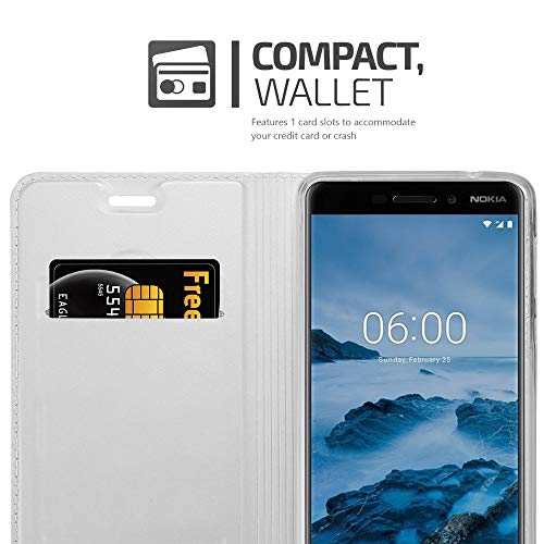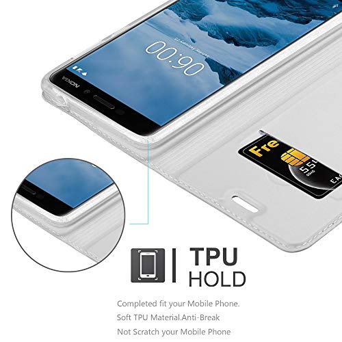 Cadorabo Custodia Libro per Nokia 6.1 2018 in CLASSY ARGENTO - con Vani di Carte, Funzione Stand e Chiusura Magnetica - Portafoglio Cover Case Wallet Book Etui Protezione