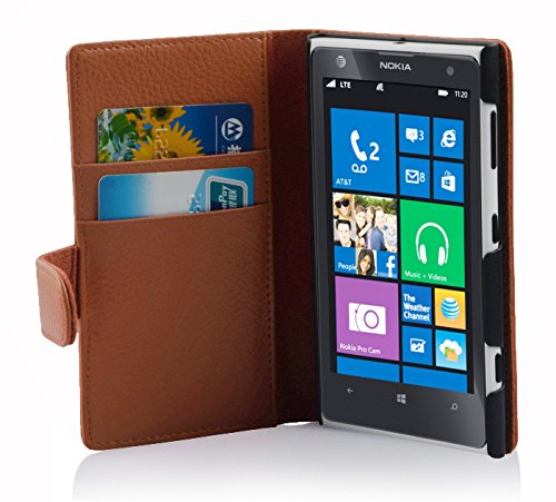 Cadorabo Custodia Libro per Nokia Lumia 1020 in MARRONE CIOCCOLATA - con Vani di Carte e Funzione Stand di Similpelle Strutturata - Portafoglio Cover Case Wallet Book Etui Protezione