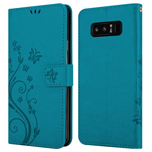 Cadorabo Custodia Libro per Samsung Galaxy Note 8 in Blu Fiore - in Design di Fiore con Chiusura Magnetica, Funzione Stand e 3 Vani di Carte - Portafoglio Cover Case Wallet Book Etui Protezione