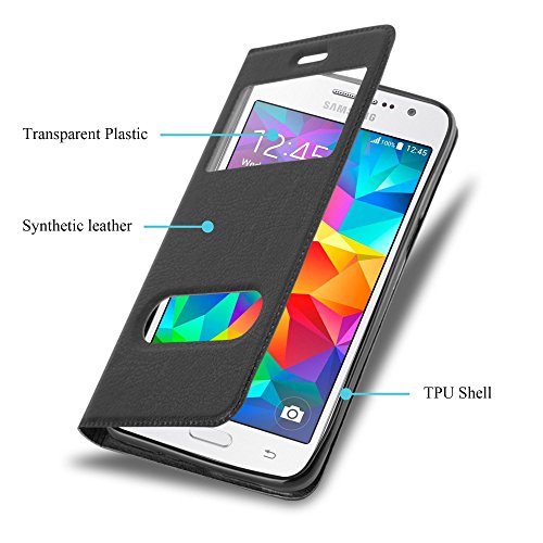 Cadorabo Custodia Libro per Samsung Galaxy GRAND PRIME in NERO COMETA - con Funzione Stand e Chiusura Magnetica - Portafoglio Cover Case Wallet Book Etui Protezione
