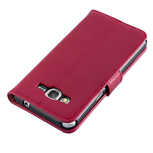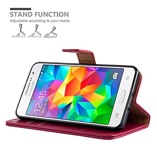 Cadorabo Custodia Libro per Samsung Galaxy GRAND PRIME in ROSSO VINACCIA - con Vani di Carte, Funzione Stand e Chiusura Magnetica - Portafoglio Cover Case Wallet Book Etui Protezione
