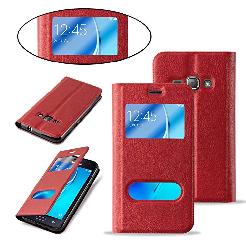 Cadorabo Custodia Libro per Samsung Galaxy J1 2015 in ROSSO ZAFFERANO - con Funzione Stand e Chiusura Magnetica - Portafoglio Cover Case Wallet Book Etui Protezione