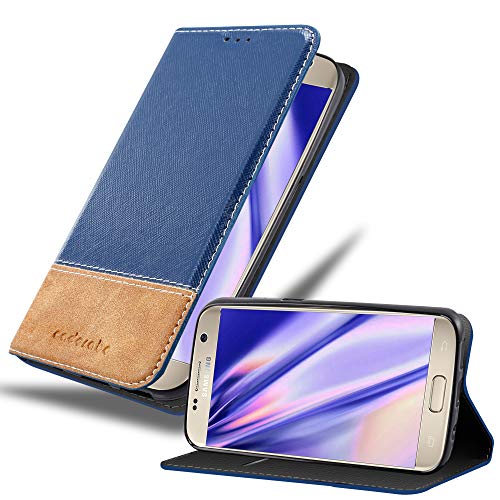 Cadorabo Custodia Libro per Samsung Galaxy S7 in BLU SCURO MARRONE - con Vani di Carte, Funzione Stand e Chiusura Magnetica - Portafoglio Cover Case Wallet Book Etui Protezione