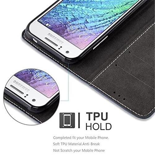 Cadorabo Custodia Libro per Samsung Galaxy J1 2015 in BLU SCURO MARRONE - con Vani di Carte, Funzione Stand e Chiusura Magnetica - Portafoglio Cover Case Wallet Book Etui Protezione