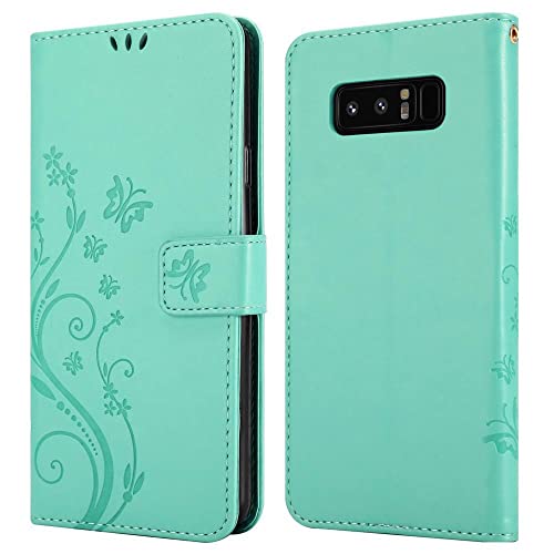 Cadorabo Custodia Libro per Samsung Galaxy NOTE 8 in TURCHESE FIORE - in Design di Fiore con Chiusura Magnetica, Funzione Stand e 3 Vani di Carte - Portafoglio Cover Case Wallet Book Etui Protezione