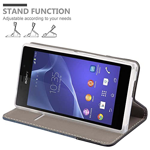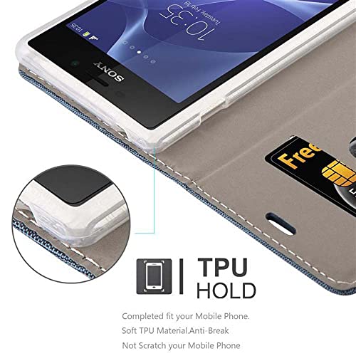 Cadorabo Custodia Libro per Sony Xperia M2 AQUA in AZZURRO SCURO NERO - con Vani di Carte, Funzione Stand e Chiusura Magnetica - Portafoglio Cover Case Wallet Book Etui Protezione