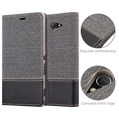 Cadorabo Custodia Libro per Sony Xperia M2 in GRIGIO NERO - con Vani di Carte, Funzione Stand e Chiusura Magnetica - Portafoglio Cover Case Wallet Book Etui Protezione