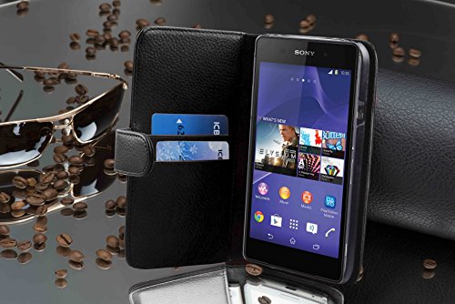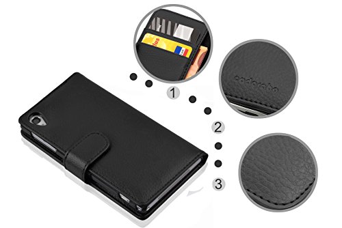 Cadorabo Custodia Libro per Sony Xperia Z2 in NERO PROFONDO - con Vani di Carte e Funzione Stand di Similpelle Strutturata - Portafoglio Cover Case Wallet Book Etui Protezione