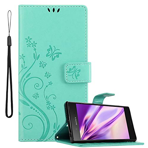 Cadorabo Custodia Libro per Sony Xperia XZ1 in TURCHESE FIORE - in Design di Fiore con Chiusura Magnetica, Funzione Stand e 3 Vani di Carte - Portafoglio Cover Case Wallet Book Etui Protezione