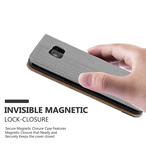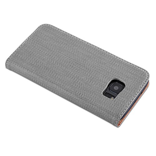 Cadorabo Custodia per Samsung Galaxy S7 EDGE Custodia di Libro di Finta-Pelle STILE RAFIA in GRIGIO BLU - con Vani di Carte Funzione Stand e Chiusura Magnetica - Cover Case Wallet Book Etui