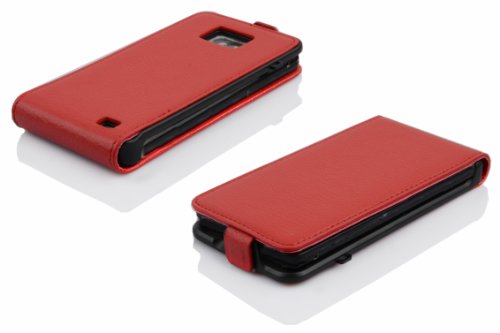 Cadorabo Custodia per Samsung Galaxy S2 / S2 PLUS in ROSSO CREMISI - Protezione in Stile Flip di Similpelle Strutturata - Case Cover Wallet Book Etui