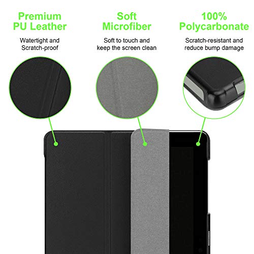 DESIGN: Questa custodia sottile di 5 mm a 360° senza funzione Auto On Off è stata progettata con chiusura magnetica e funzione di supporto variabile per renderla il più confortevole possibile.