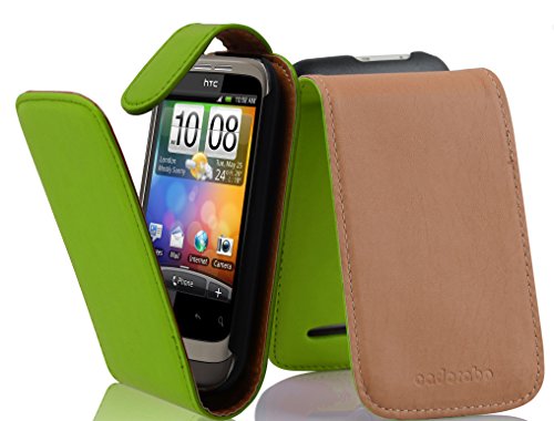 Cadorabo Custodia per HTC Wildfire in Verde Mela - Protezione in Stile Flip di Similpelle Fine - Case Cover Wallet Book Etui