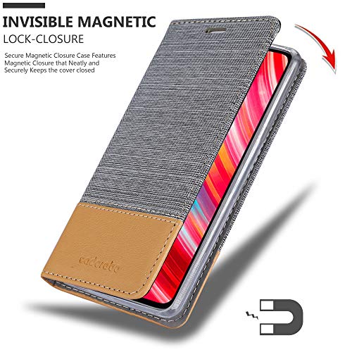Cadorabo Custodia per Xiaomi RedMi Note 8 PRO in grigio chiaro marrone - Custodia con chiusura magnetica, funzione leggio e scomparto per carte di credito, custodia protettiva a libro