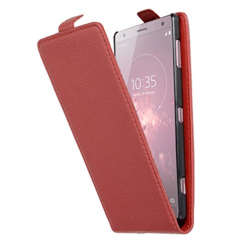 Cadorabo Custodia per Sony Xperia XZ2 in Rosso Cremisi - Protezione in Stile Flip di Similpelle Strutturata - Case Cover Wallet Book Etui
