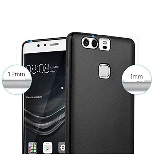 Cadorabo DE-103986 Huawei P9 Custodia in silicone TPU con design metallizzato opaco Ultra Slim Soft Back Cover Case Bumper Nero