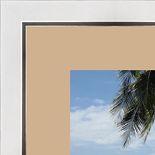 RK Cadres Photo Frame con Passepartout Sabbia per un'immagine 23x33 o 33 x 23 cm Cornice portafoto Bianco con Filo d'Argento, 3.4 Centimetri di Larghezza, Foto Struttura in Legno