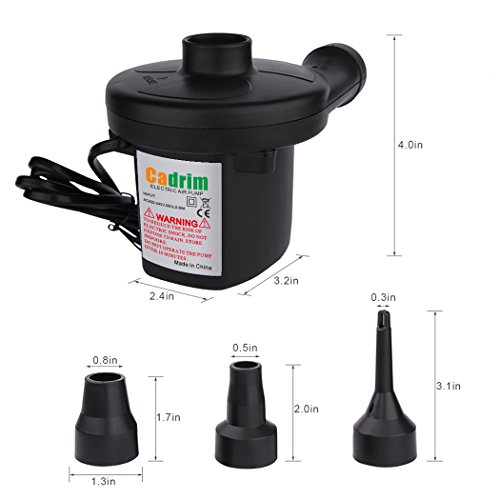 Cadrim Pompa di Aria Elettrica Gonfiabile Pompe Elettriche,Sgonfiaggio Automatica e Rapida Pompaggio con 3 Allegati,per Materassi/Giocattoli gonfiabili/Canotti/Cuscino/Outdoor